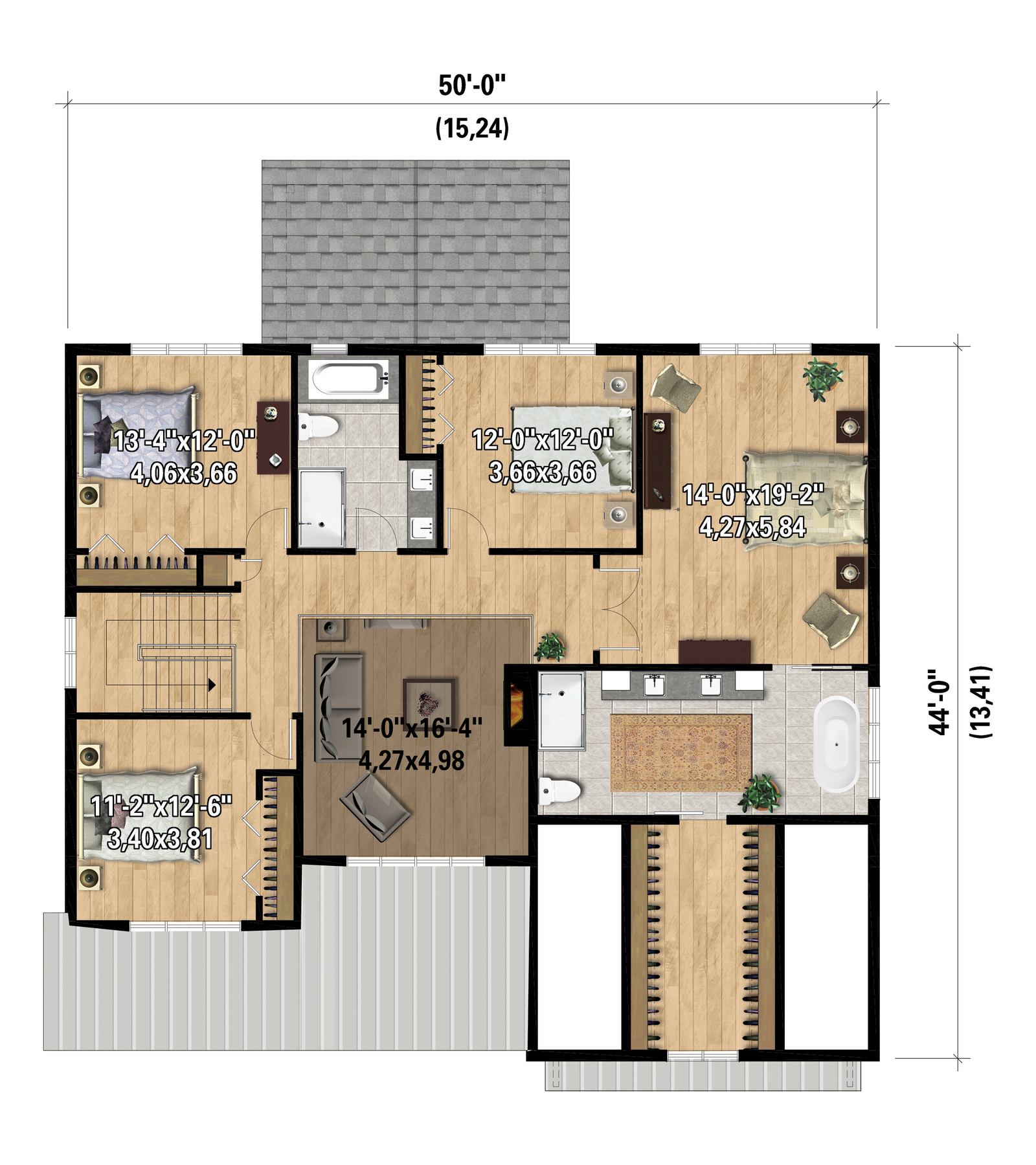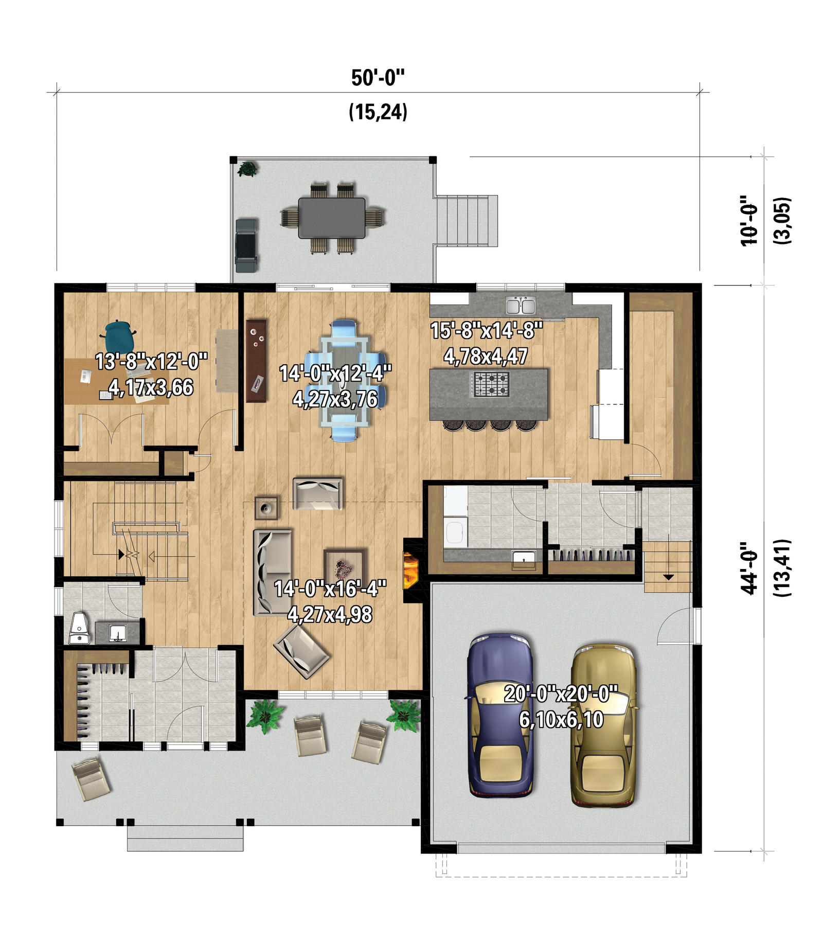 | Front | 50 ft | Total living surface | 3187 ft² |
