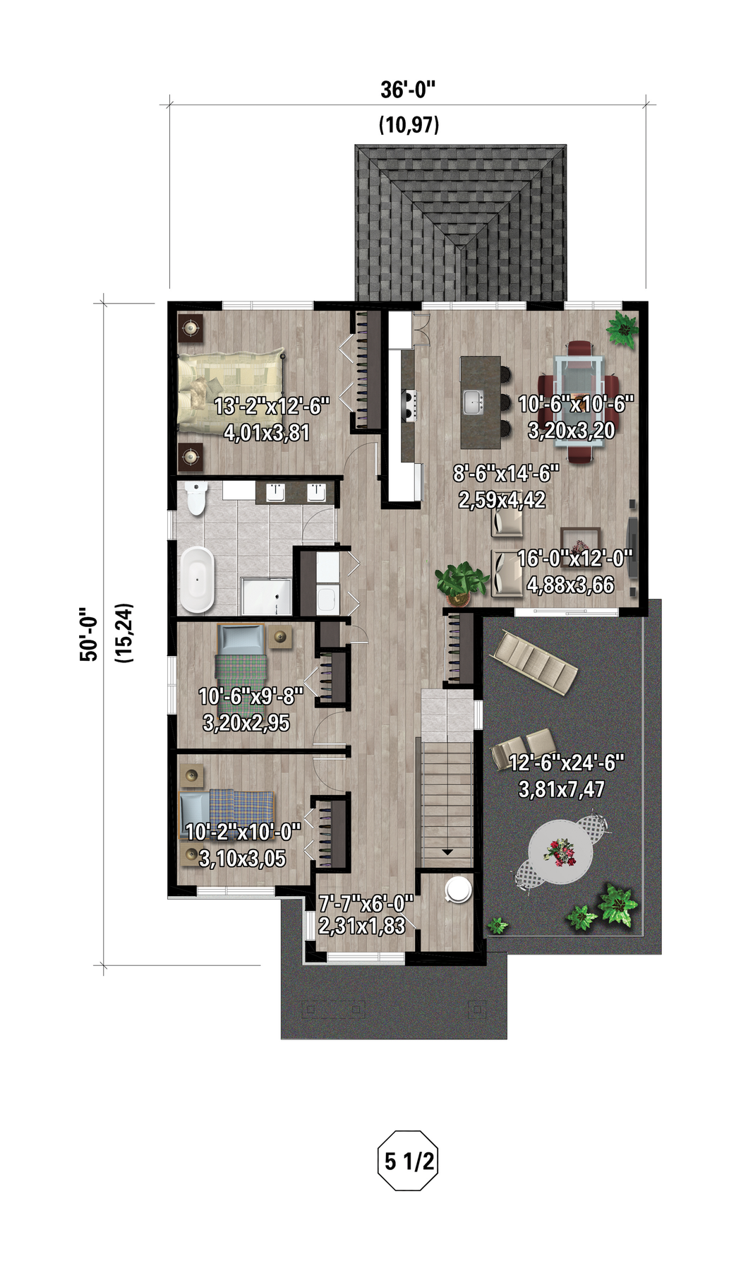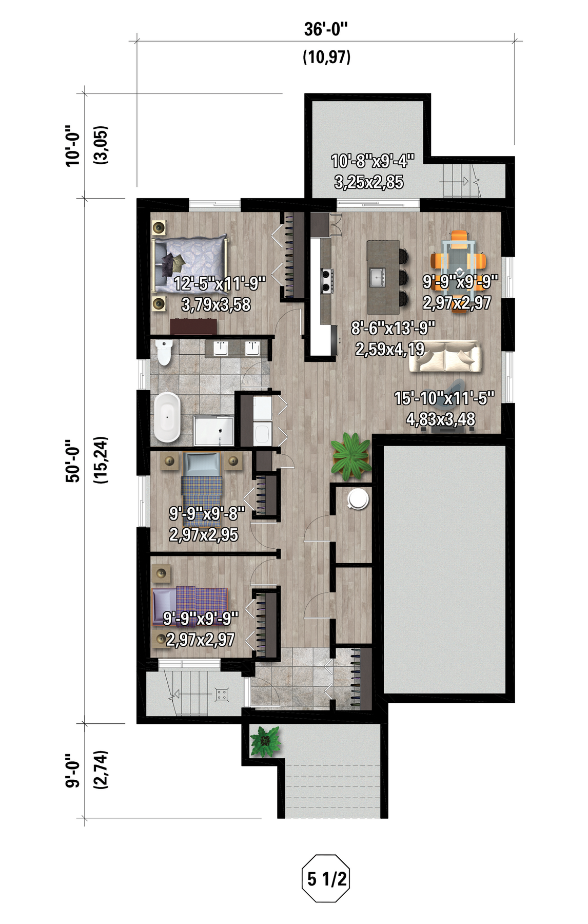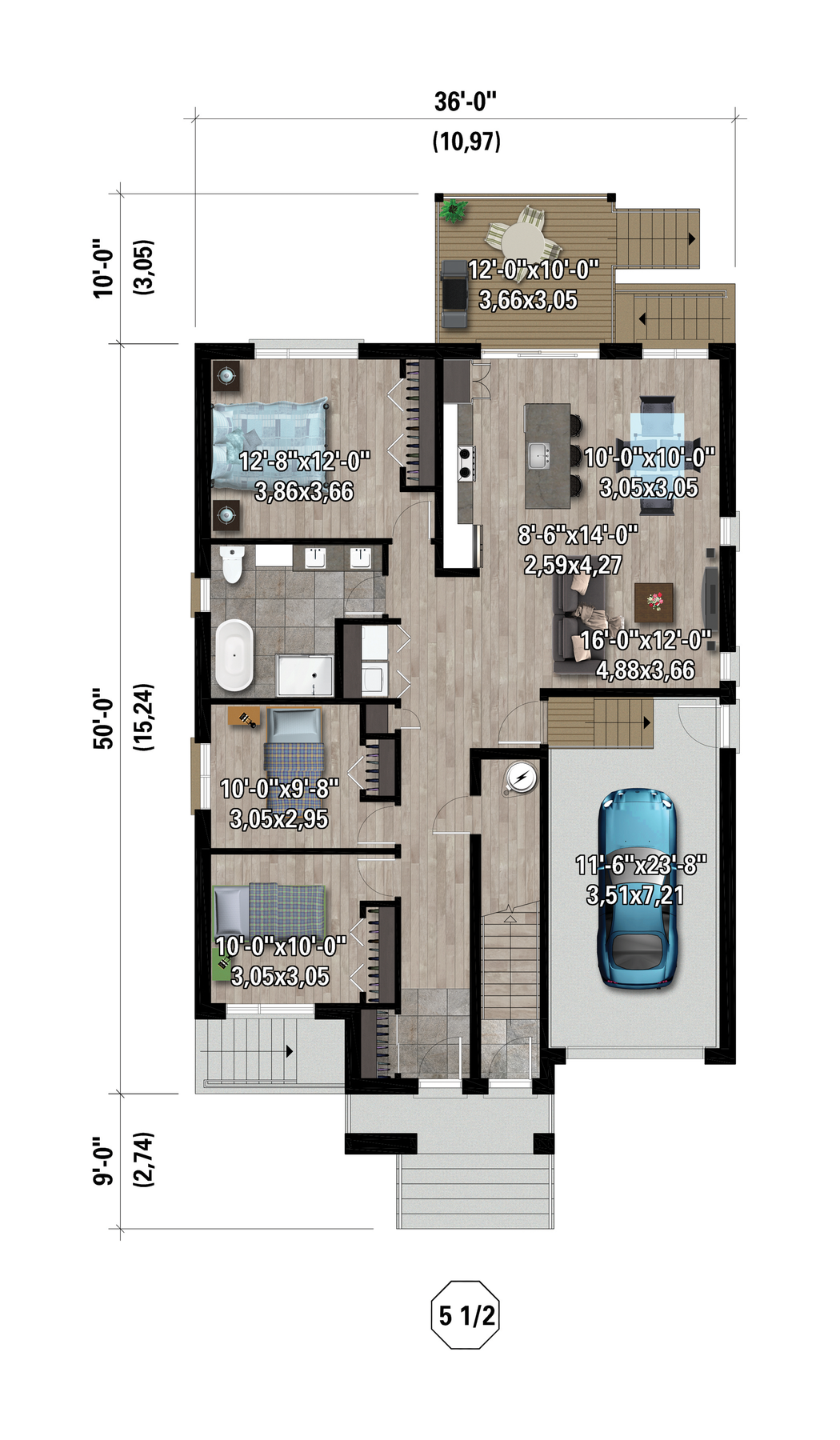 | Front | 36 ft | Total living surface | 4257 ft² |