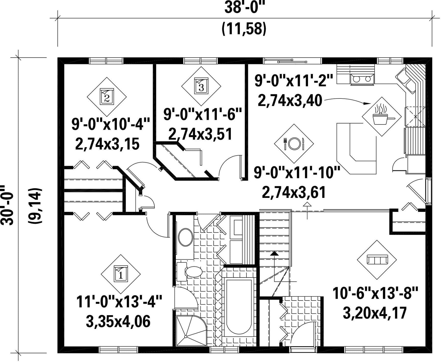 Hauteur 19 pi 3 poNombre de chambres 3
