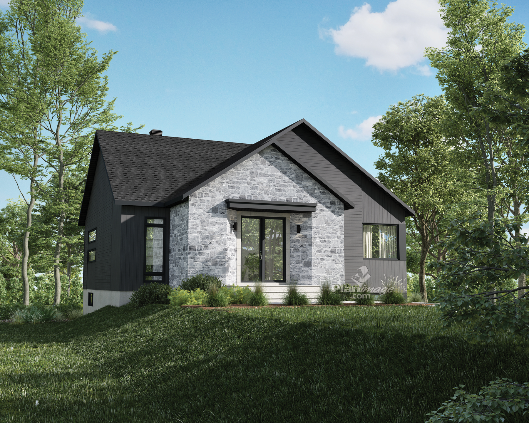 Surface rez-de-chaussée 1330 pi² Finition extérieure Bois + Pierre