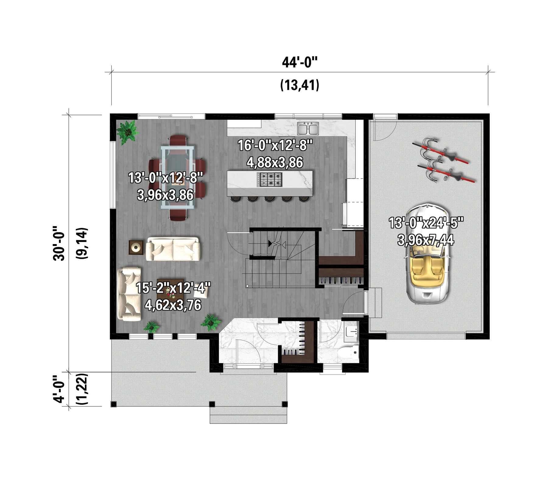 | Surface rez-de-chaussée | 854 pi² | Finition extérieure | Bois + Pierre |
