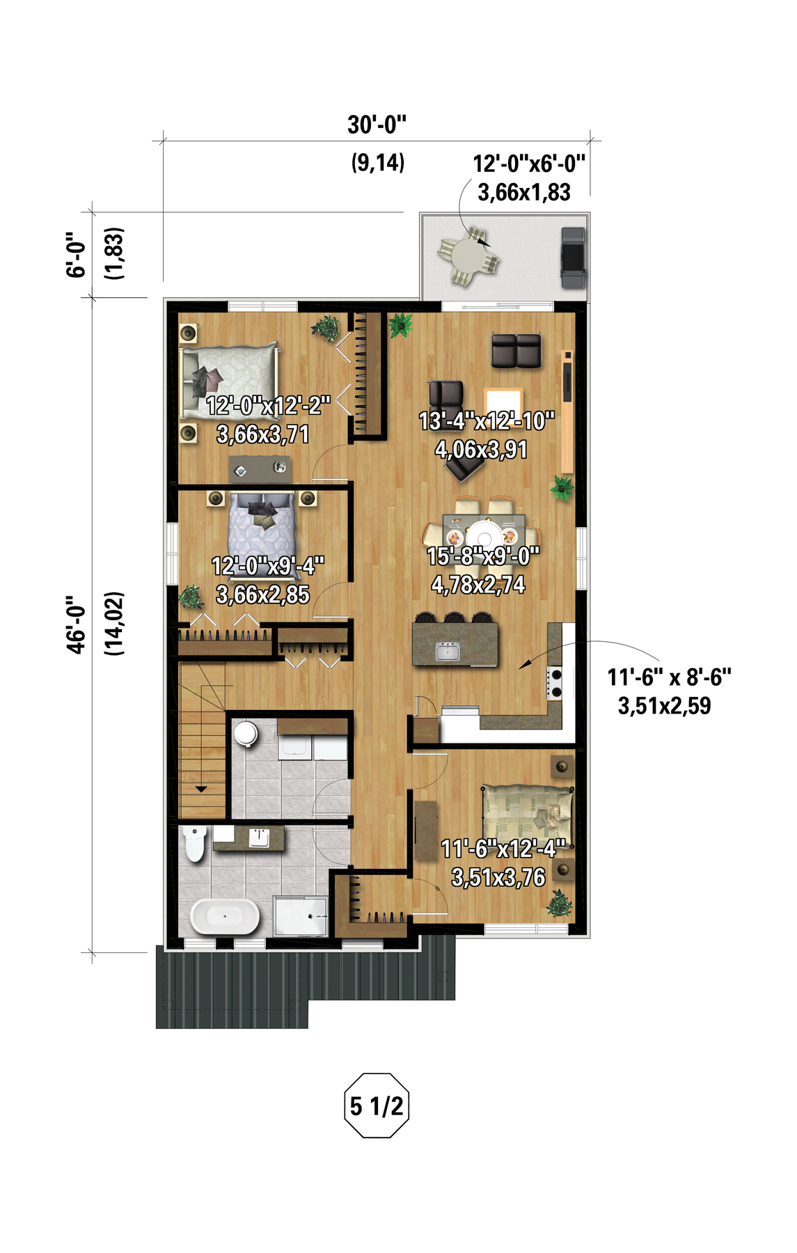 | Profondeur | 46 pi | Nombre de salles de bain | 3 |