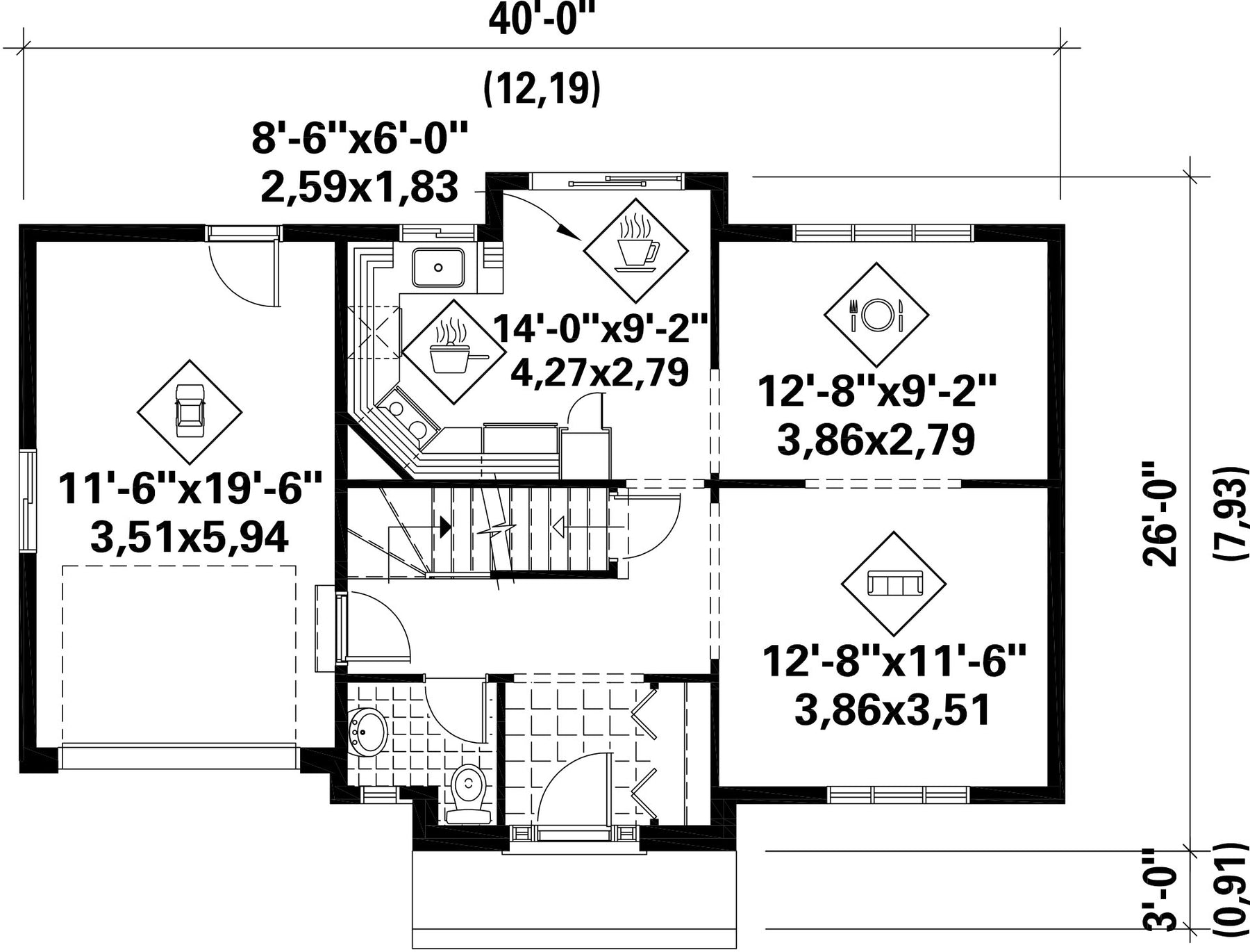 | Profondeur | 26 pi | Nombre de salles de bain | 1 |